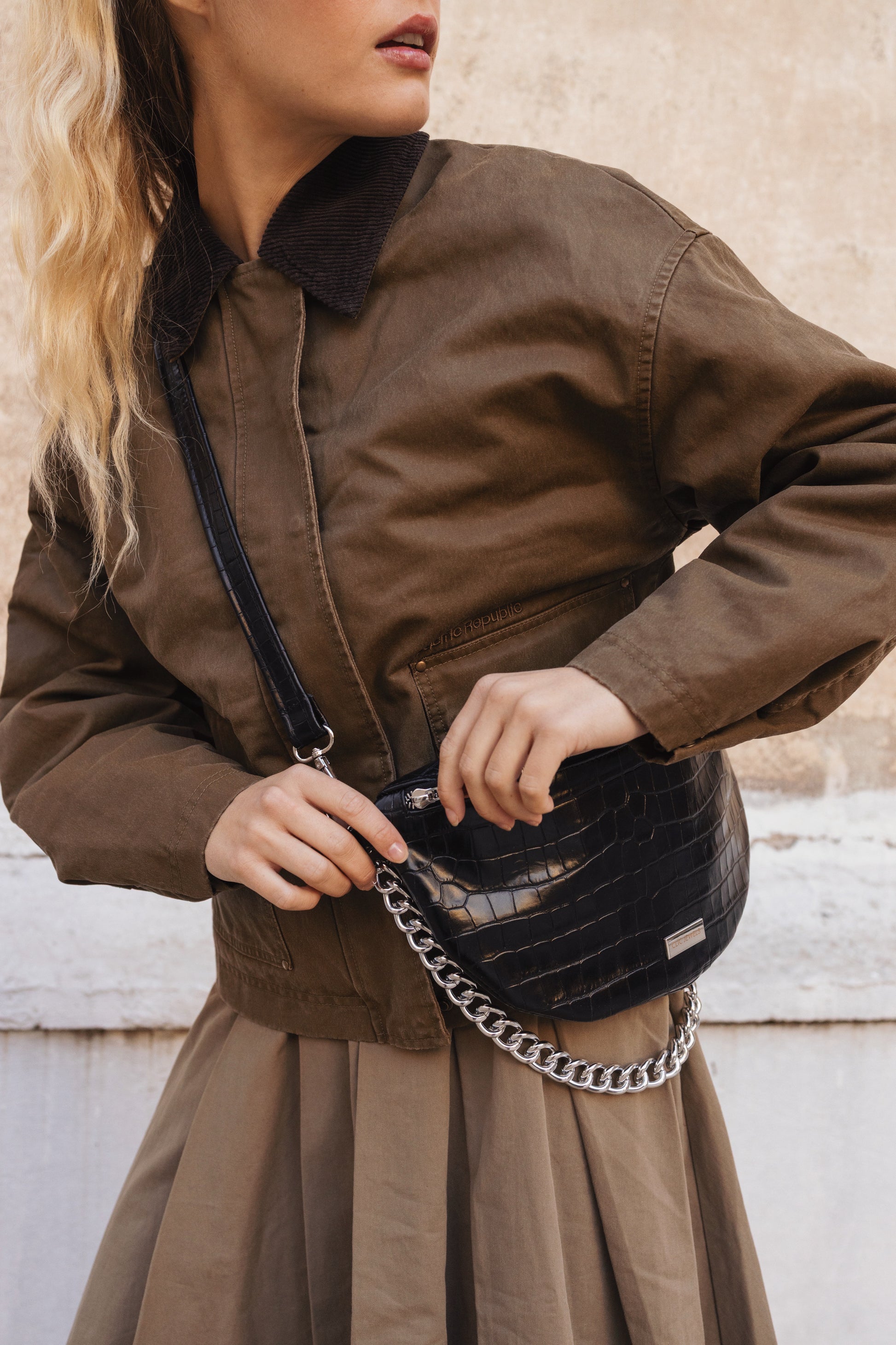 Beltbag is an ideal design to keep safe your belongings all day long either in a walk or during a trip. A same material strap is included and a chain. Both strap and chain are removable so you can wear it as you like.