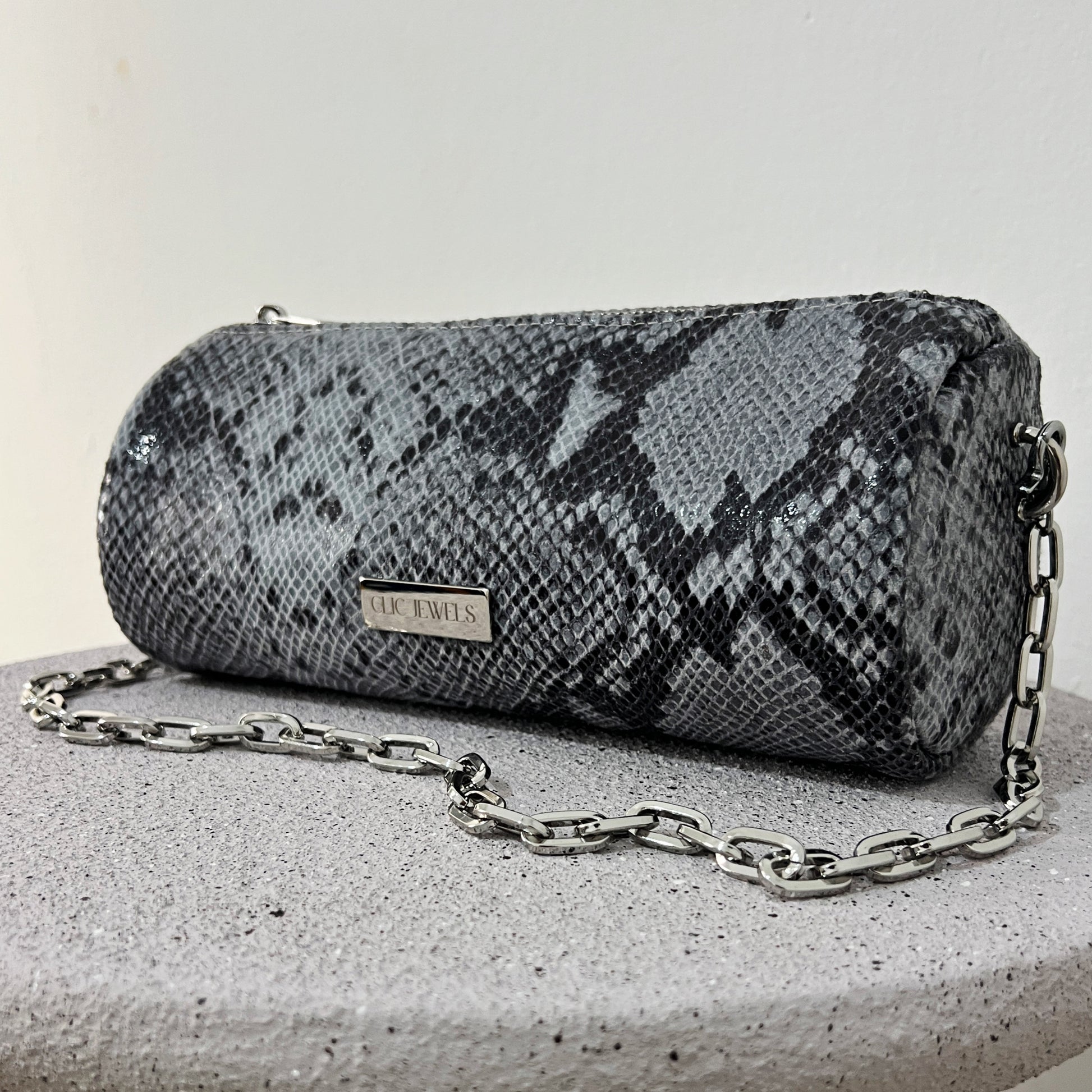 Barrel Bag (grey python print genuine leather)