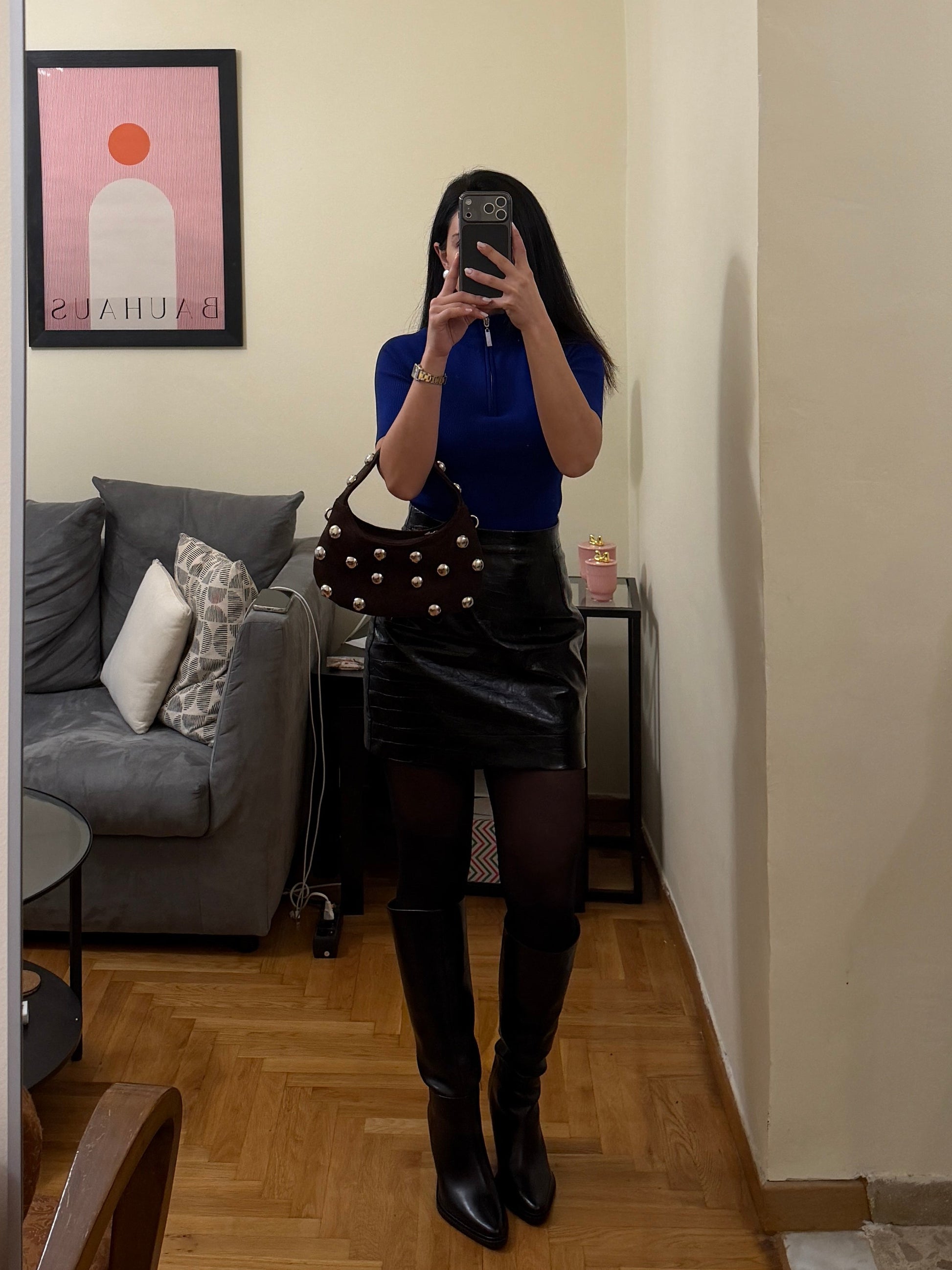 CANDY MINI STUDS (brown suede genuine leather)