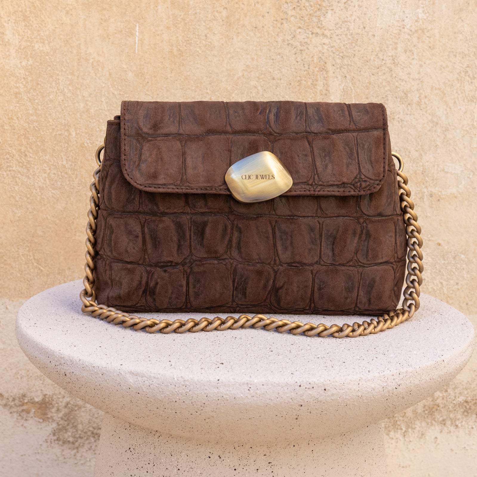 DONNA MEDIUM (brown suede croco embossed genuine leather)