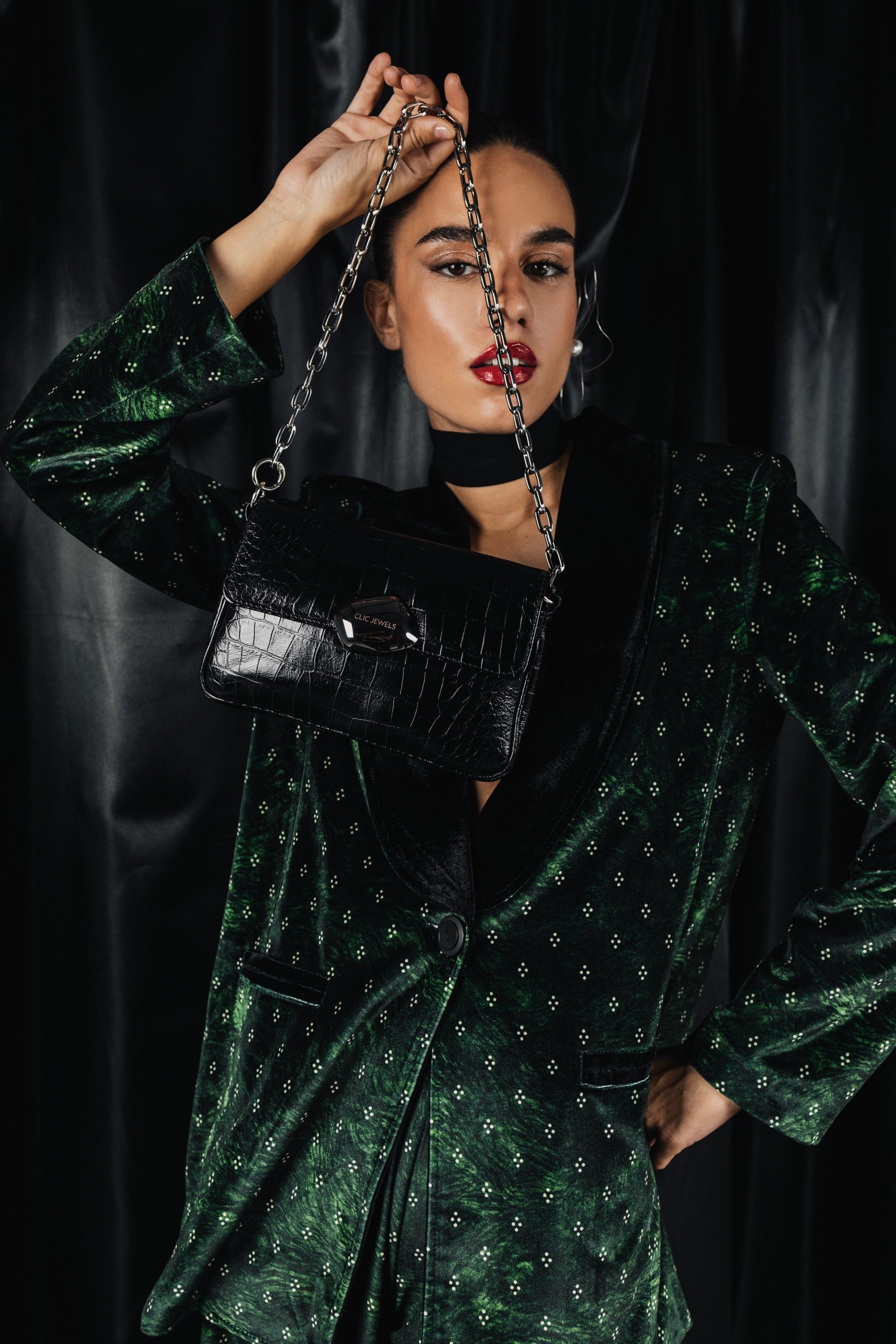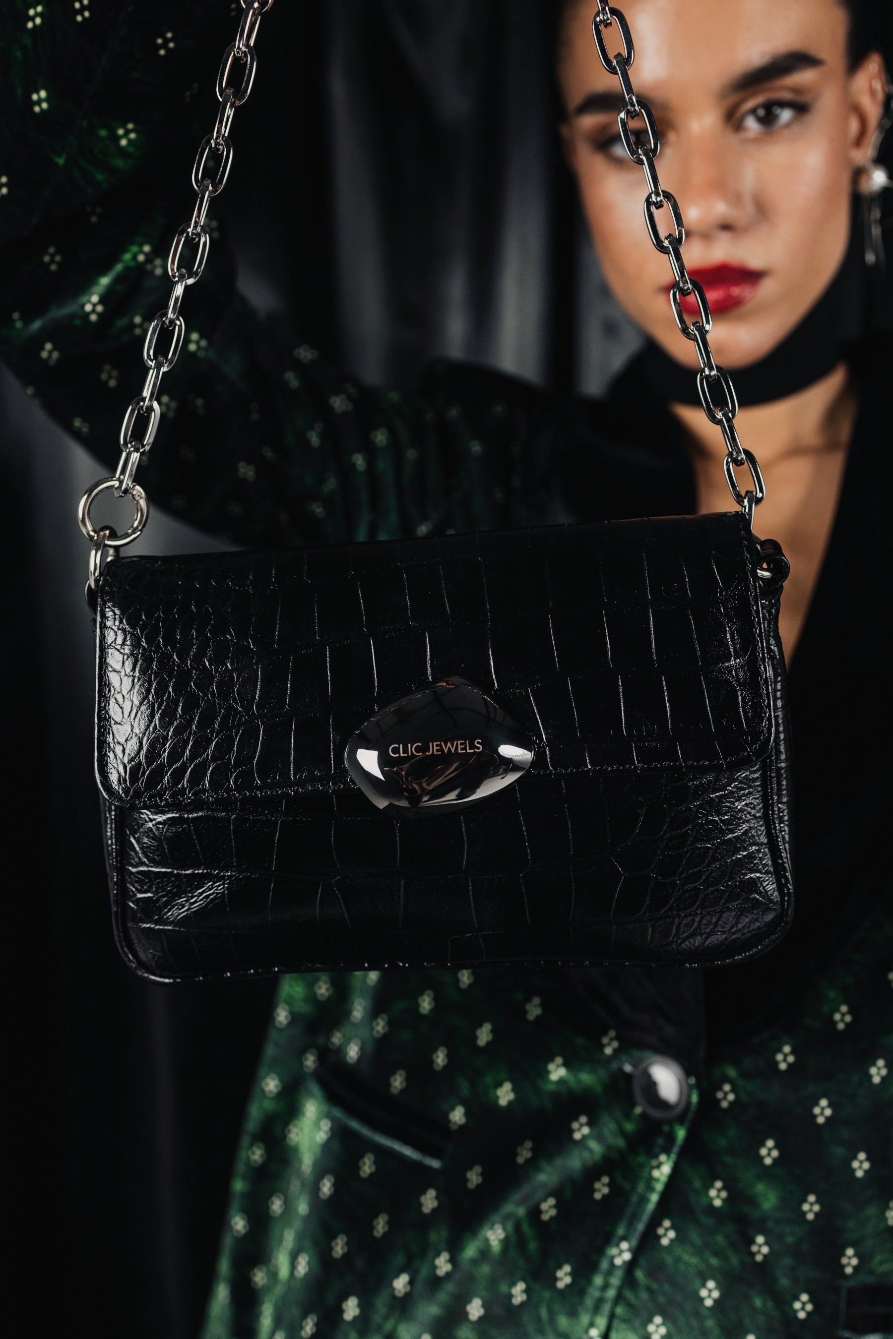 LILY MINIBAG (black croco genuine leather)