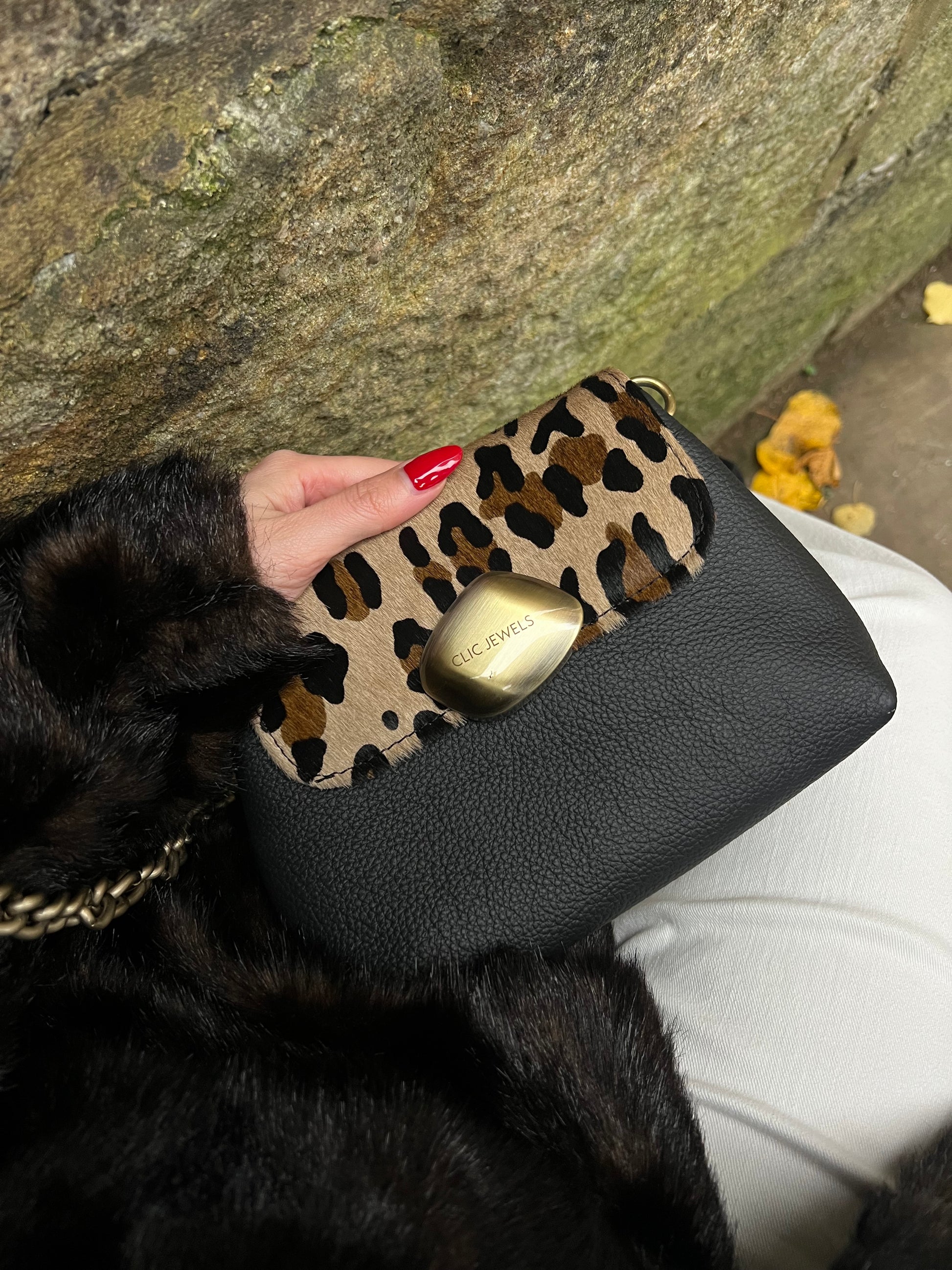 MAYA MINIBAG (animal print ponyskin/black dolaro genuine leather)