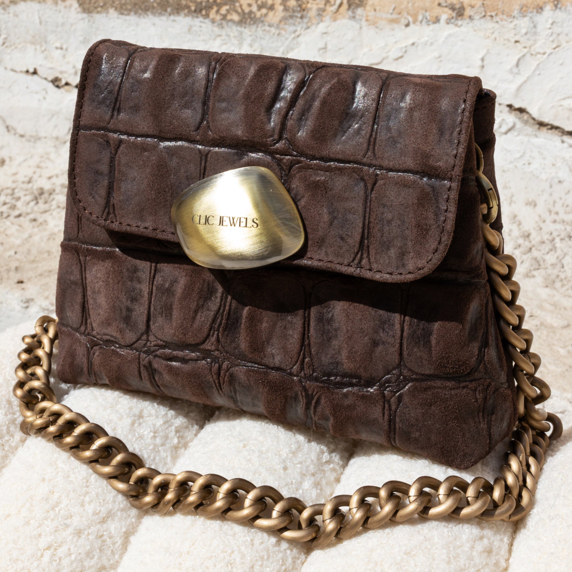 MAYA MINIBAG (dark brown suede croco embossed genuine leather)