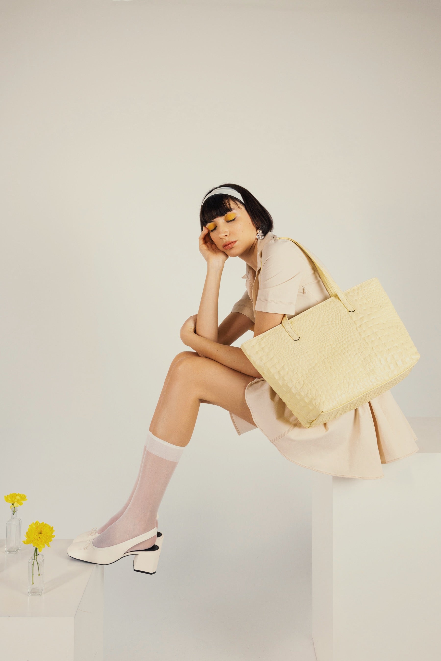 NELLY TOTEBAG (vanilla yellow croco genuine leather)