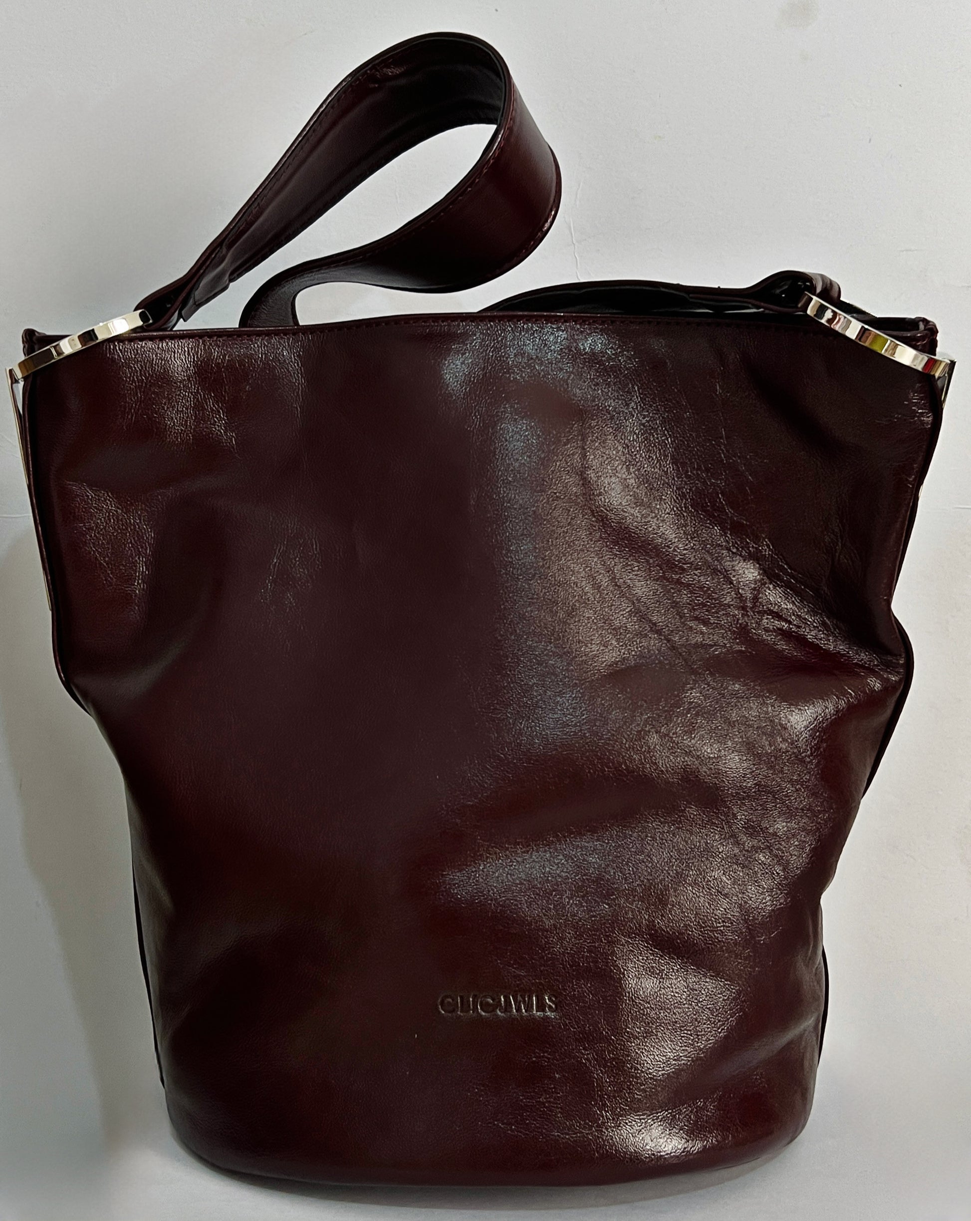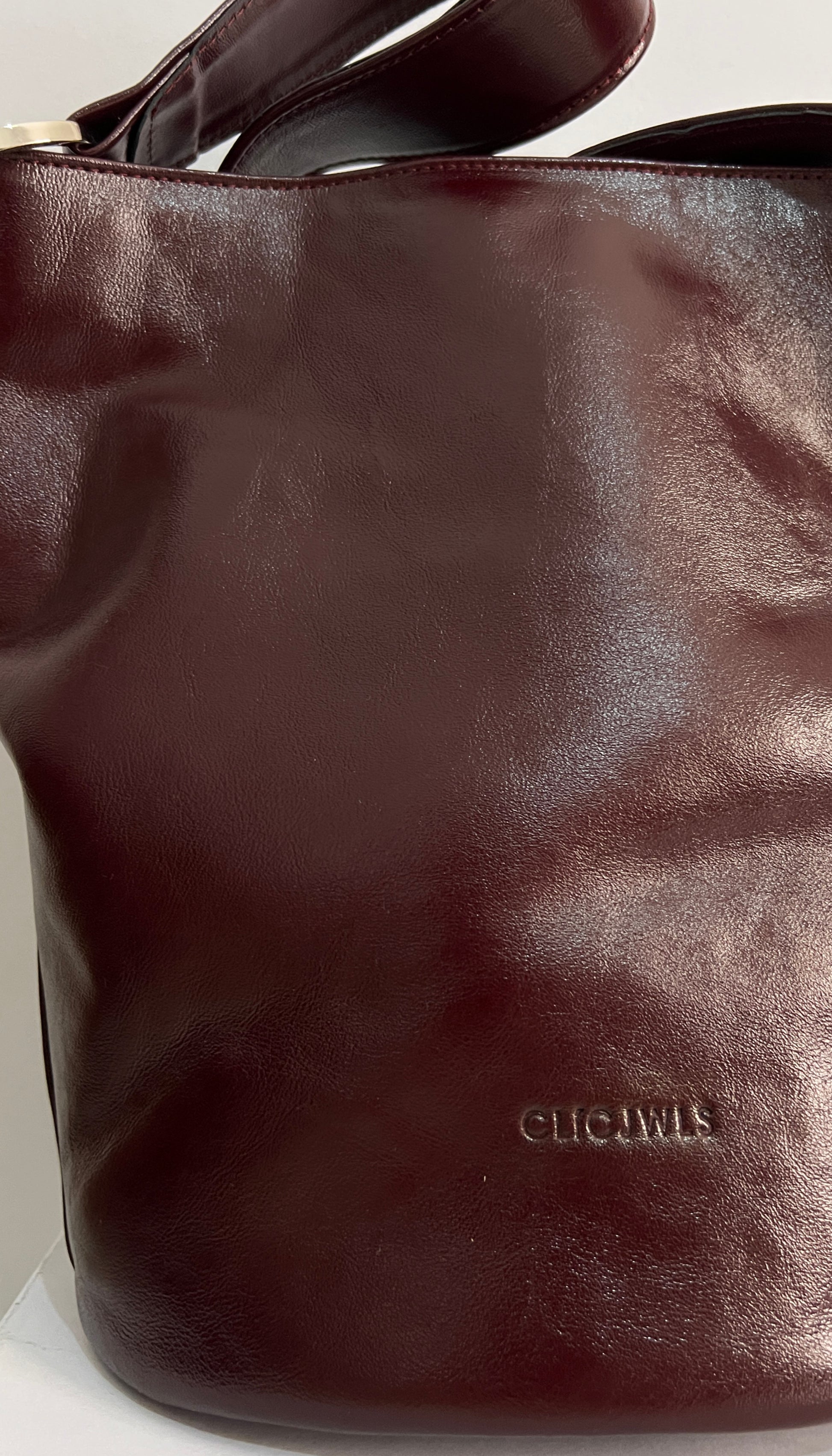 SANDRA BUCKETBAG (glossy bordeaux genuine leather)