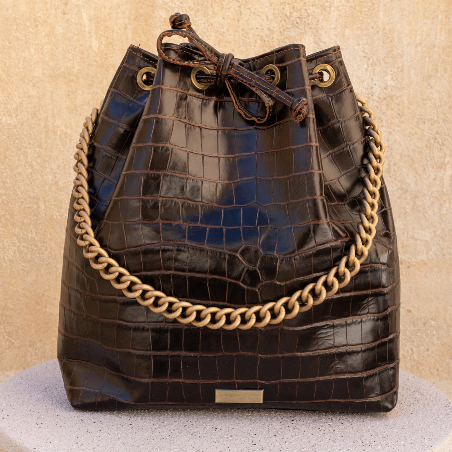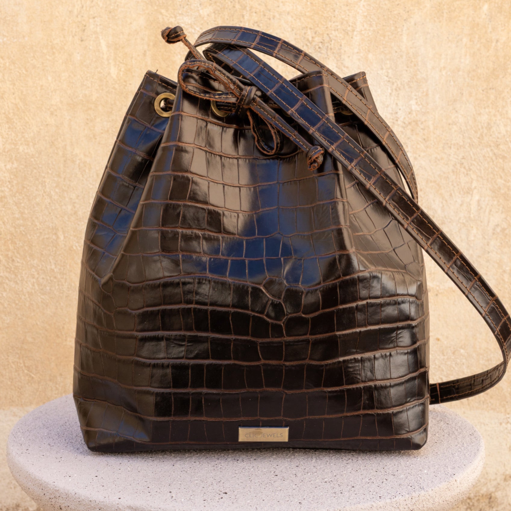 ZOE BACKPACK/BUCKETBAG (dark brown croco genuine leather)
